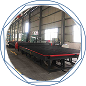 **步:先把切好尺寸的玻璃平放在全自動清潔上膠機的進料臺上,左手按下啟動開關,右手稍用...